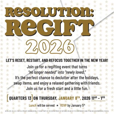Join us for a regifting event that turns “no longer needed” into “newly loved.” It’s the perfect chance to declutter after the holidays, swap items, and enjoy a relaxed gathering with friends.
